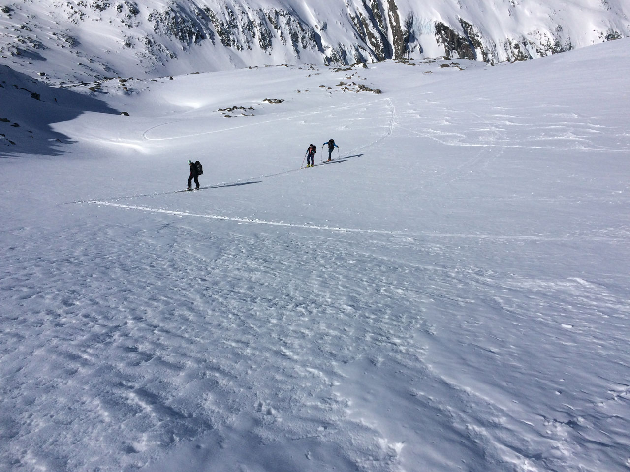 Die Abfahrtsverhältnisse werden immer besser, bald kann man richtig aufm Firn surfen.
