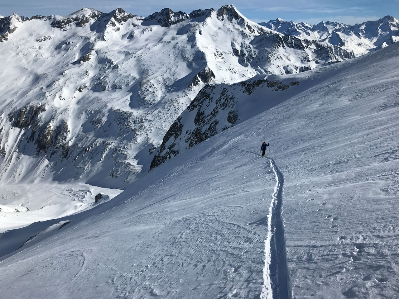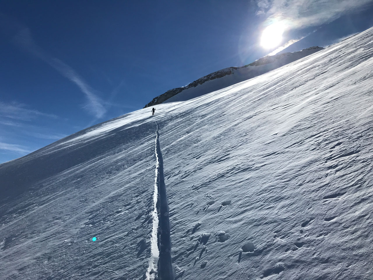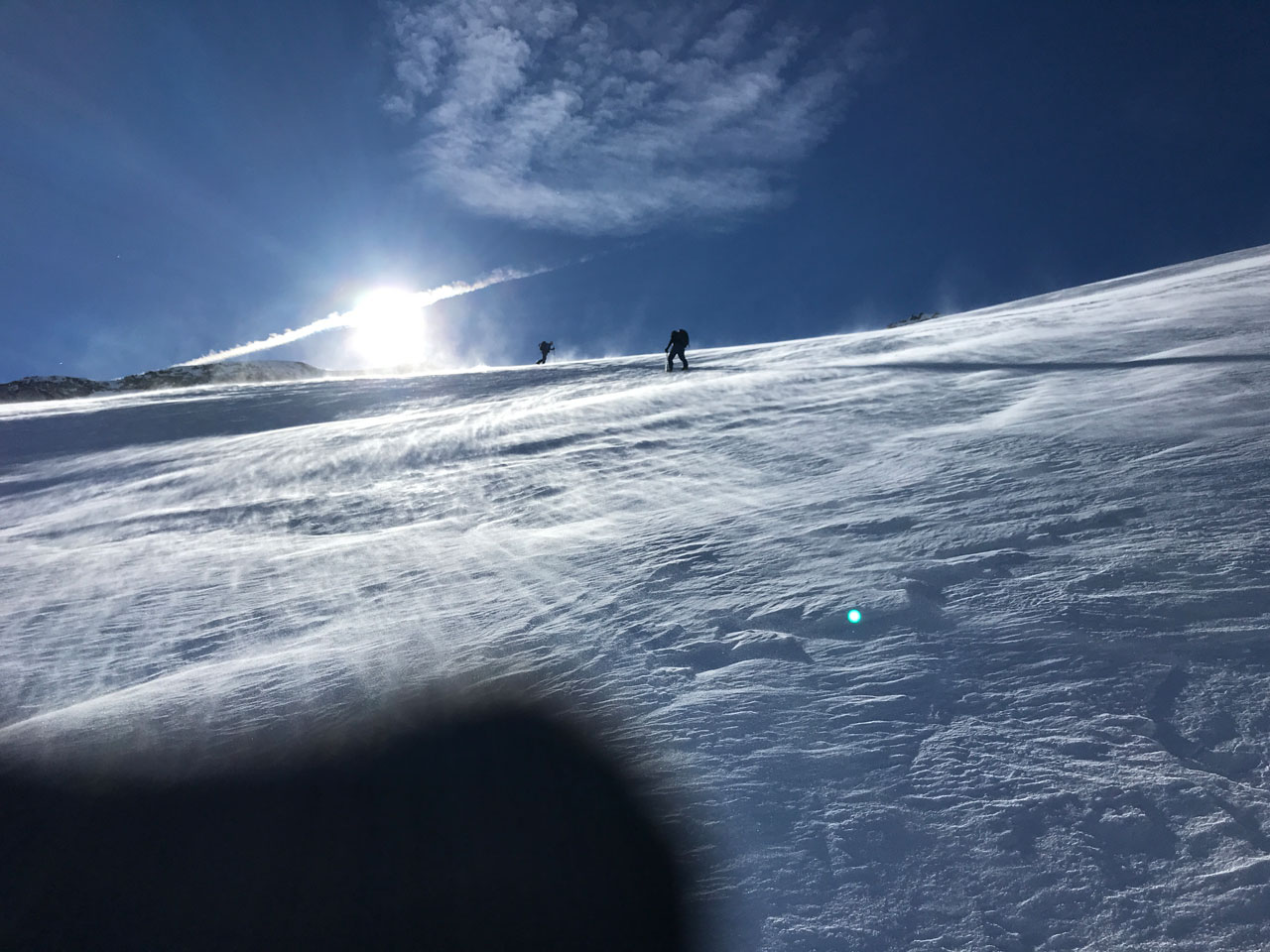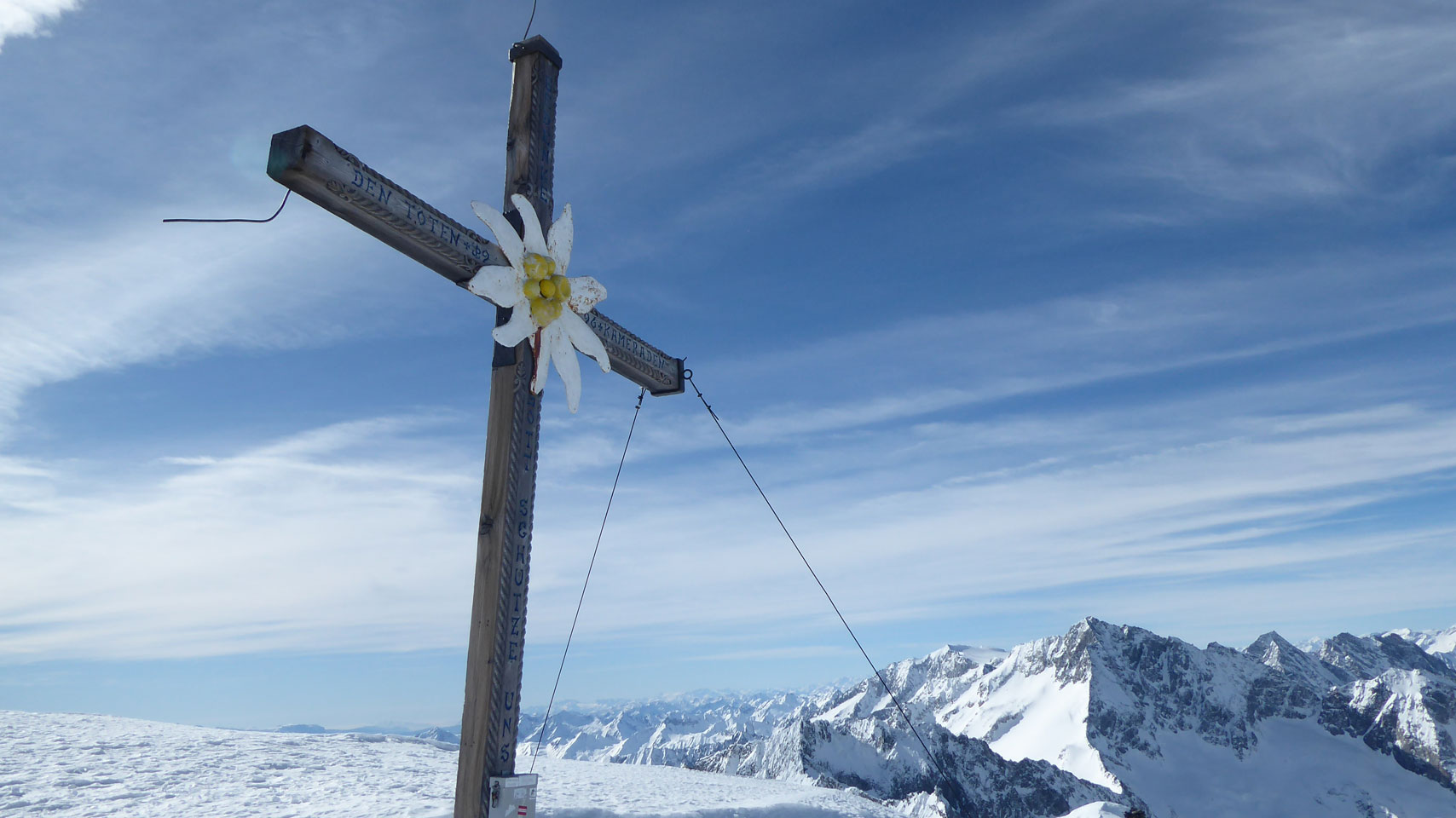 ... simmt nicht immer aber diesmal hats gepasst. Wollbachspitze unter perfekten Bedingungen, die Harscheisen konnten auch am Flaschenhals im Rucksack bleiben.