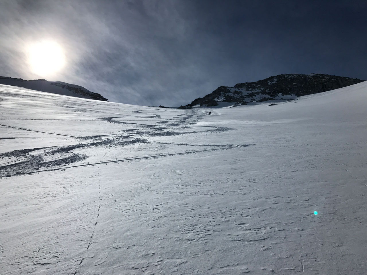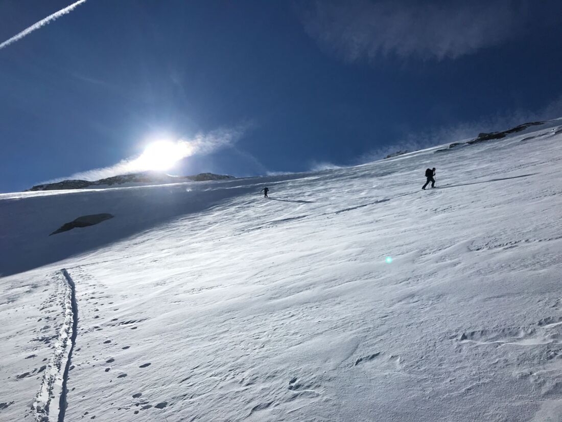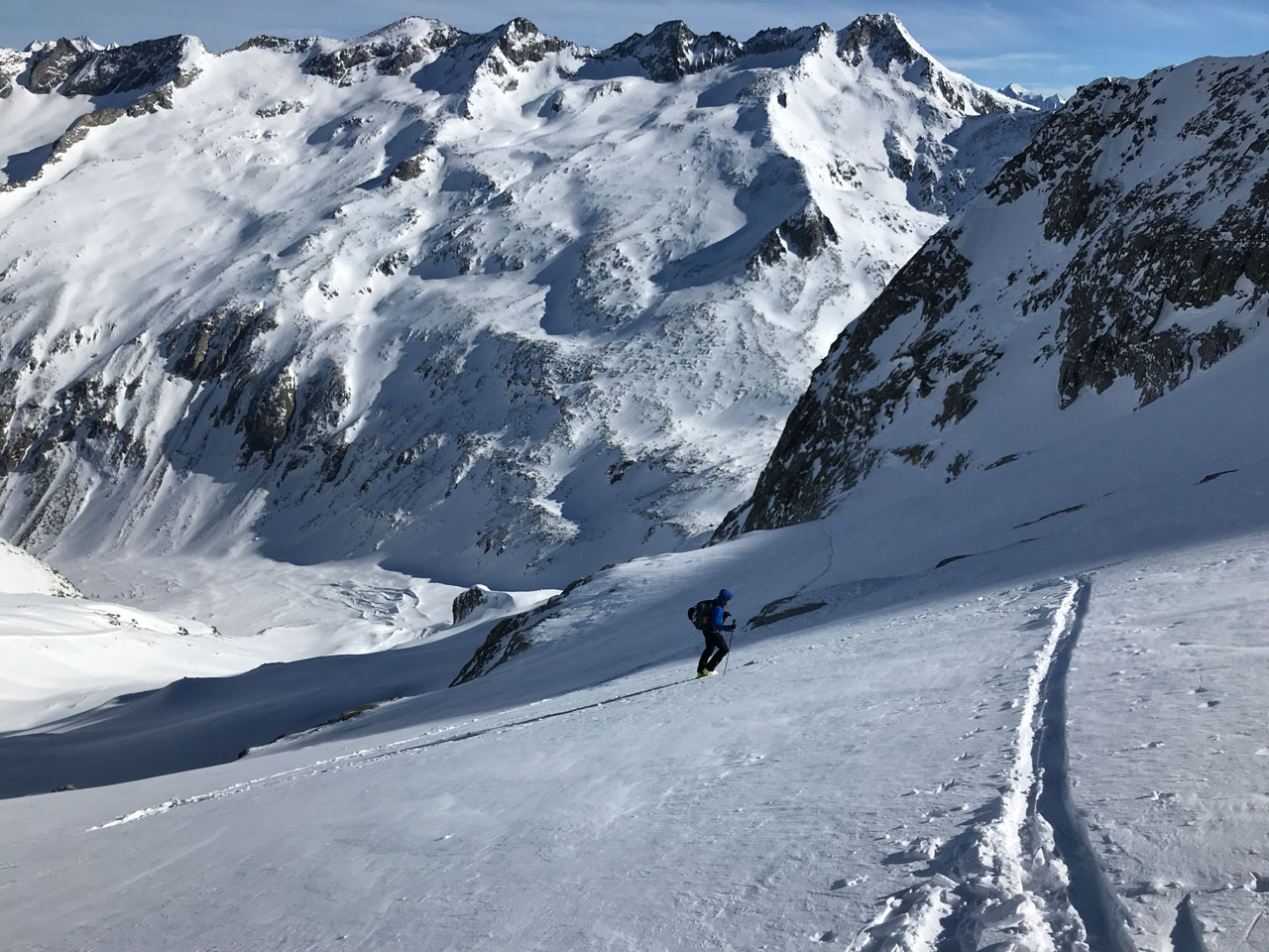 ... simmt nicht immer aber diesmal hats gepasst. Wollbachspitze unter perfekten Bedingungen, die Harscheisen konnten auch am Flaschenhals im Rucksack bleiben.