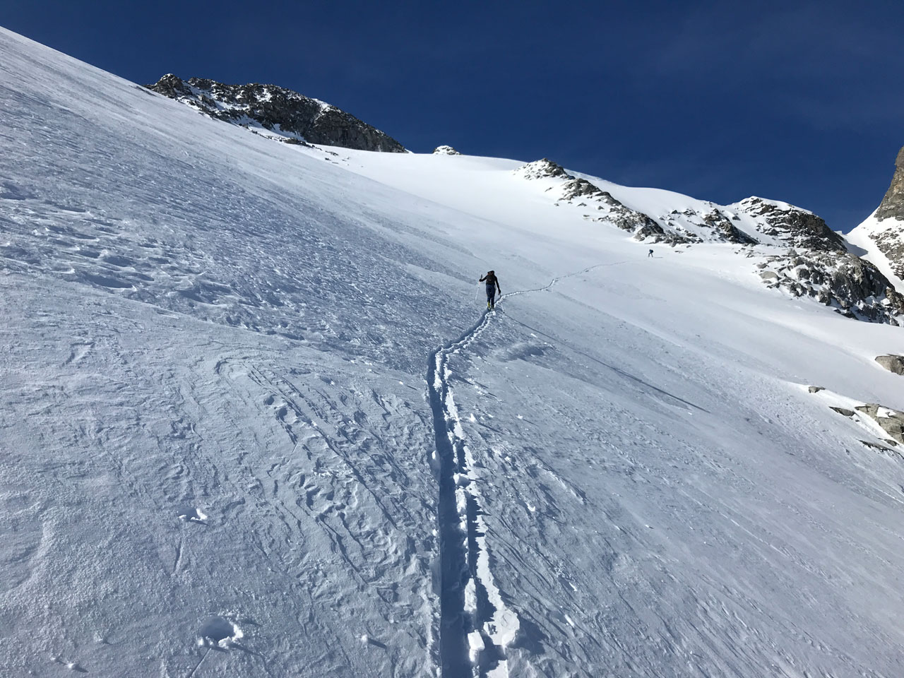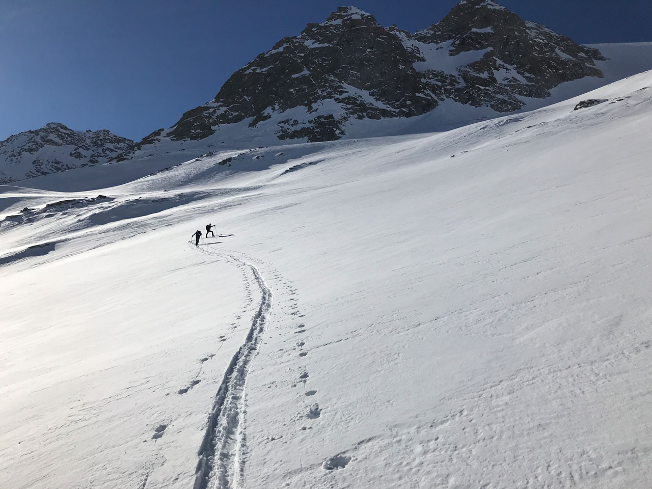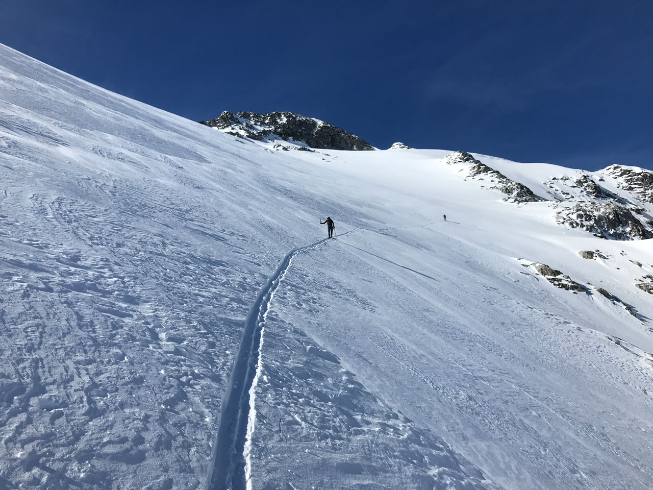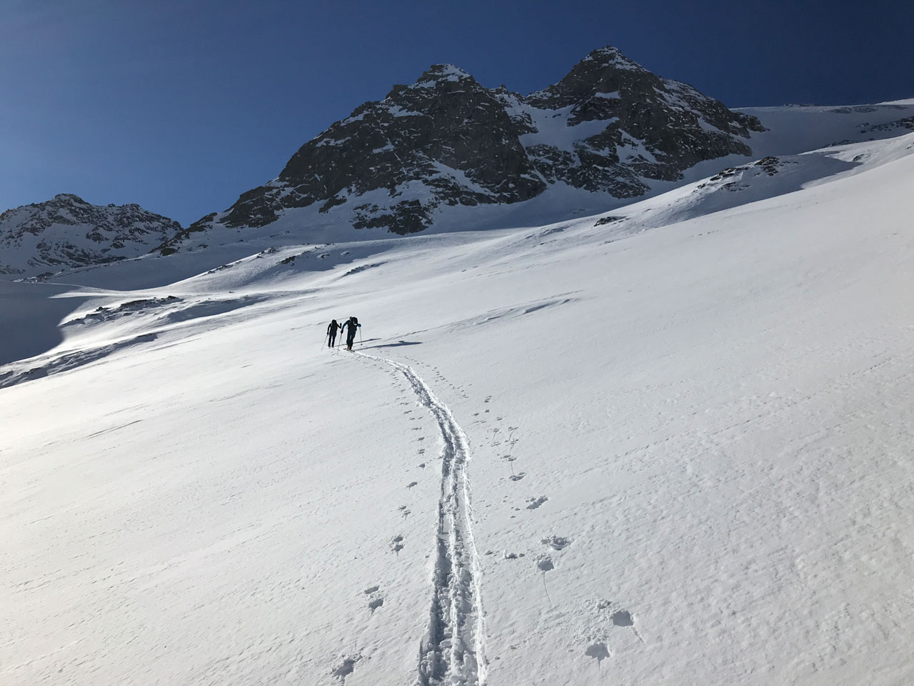 ... simmt nicht immer aber diesmal hats gepasst. Wollbachspitze unter perfekten Bedingungen, die Harscheisen konnten auch am Flaschenhals im Rucksack bleiben.