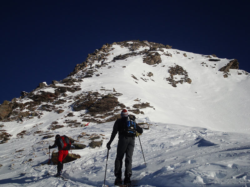 Die letzten 100 hm über den Grat zu Fuß bis zum Gipfel.