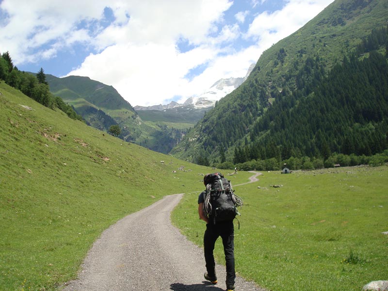 Vom Parkplatz ca 2,5km taleinwärts und in langen, weiten Serpentinen hinauf zur Geraer Hütte 2326m (2- 2,5h)