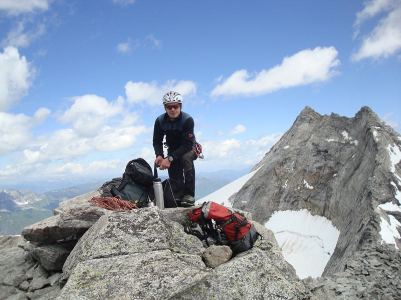Für den von uns gewählten Abstieg ins Zillertal durch die Ostrinne vom Gipfel ca. 20m dem Nordgrat Richtung Olperer folgen, dann nach rechts zurück in die Ostflanke bis man die Rinne die ins Unterschrammachkar zieht erreicht. Durch sie hinab, und über Firnfelder ins Kar. Links des Baches hinab bis man auf den Wanderweg von der Olpererhütte trifft. Über diesen in schöner Umgebung zum Schlegeisspeicher absteigen.