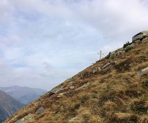 Hat man das Waldstück hinter sich gebracht, kann man das Gipfelkreuz schon sehen, es folgt aber noch der Aufstieg über steile Grassleiten bis direkt zum Gipfel.