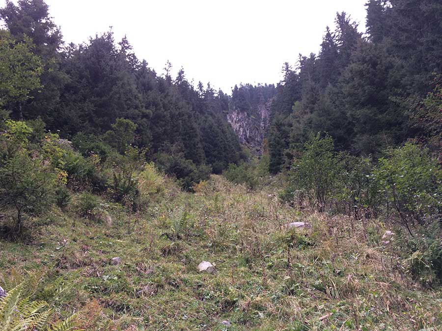 Direkt an der Bachsperre der Maxhütte nach links abbiegen und auf die markante Klamm zusteigen.