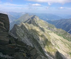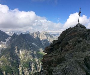 Ab hier gehts auf einem kleinen Steig markiert mit Steinmänchen weiter bis auf den SW-Grat vom Gigalitz (markanter Felszacken mit Marterl), es wird auf die andere Seite der Gratschneide gewechselt und man folgt den sehr steilen Serpentinen in Richtung Gipfel.