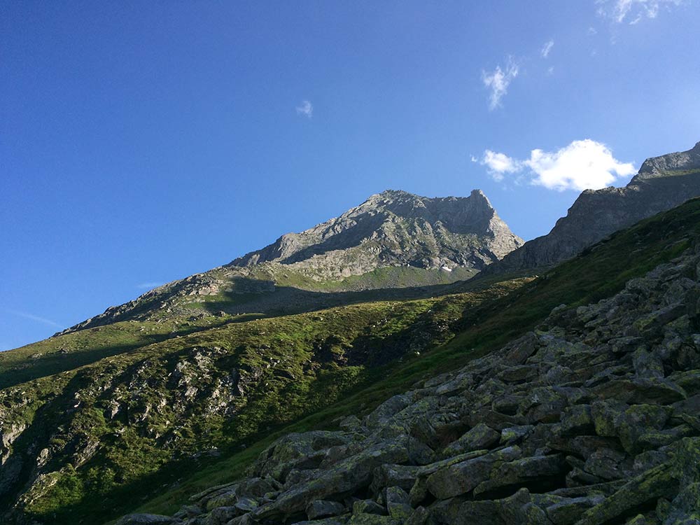 Hinter der Hütte befindet sich ein Wegweiser der die Richtung vorgibt, hier gehts nach links Richtung Lapenscharte, nach ca 30 min kommt noch ein Wegweiserschild der die Abzweigung zum Gigalitz markiert.