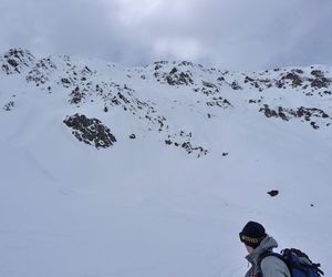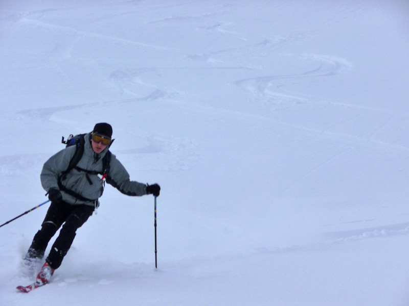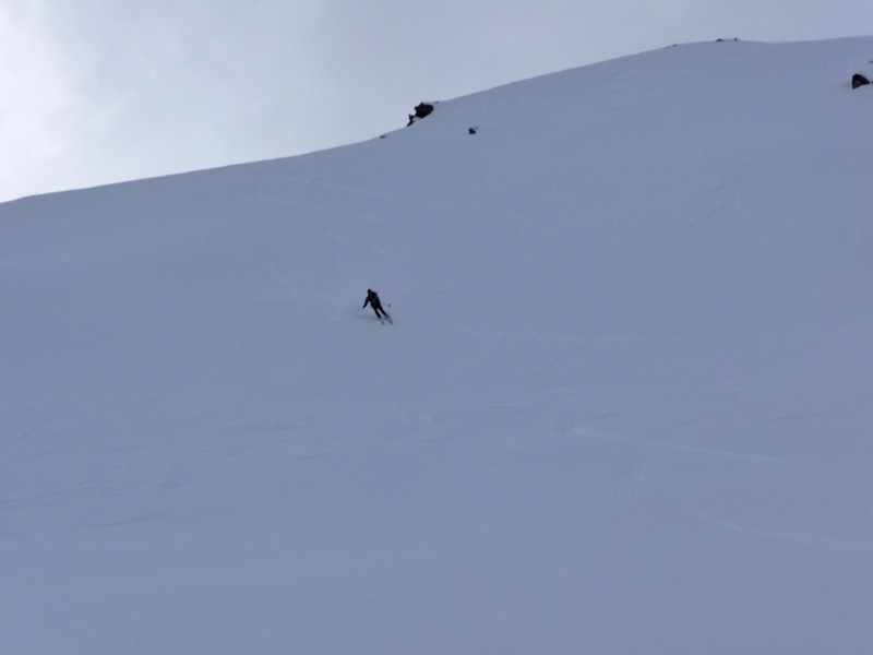 Abfahrt: Es gibt viele Abfahrtsvarianten die je nach Lawinenlage gewählt werden muss. Sicherste Variante ist der Aufstiegslinie zu folgen.