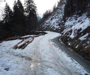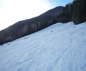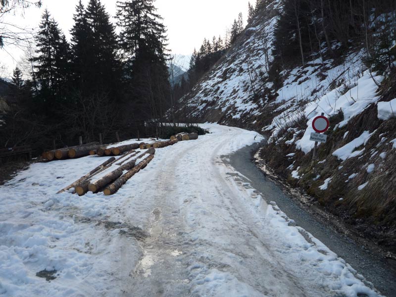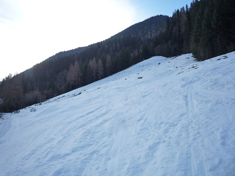 Auf dem Forstweg ca. 5 Minuten bis zu einer Almhütte, nach ca 150 Meter über einen kurzen Hang aufsteigen und über den Sommerweg durch das kurze Waldstück.
