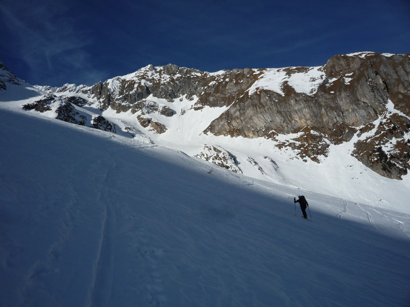 Nach einem langgezogenen Rücken erreicht man das Grinbergkar.