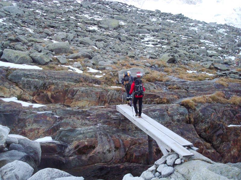 Vom Parkplatz dem Schotterweg entlang des Speichersees in Richtung Talgrund bis zur Materialseilbahn (Mountainbike vorteilhaft). Dann auf markiertem Wanderweg bis zum Furtschaglhaus auf 2295m aufsteigen.