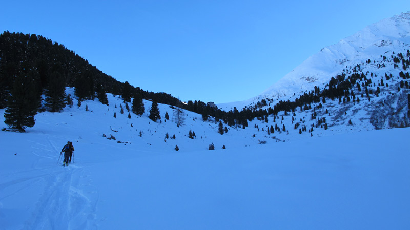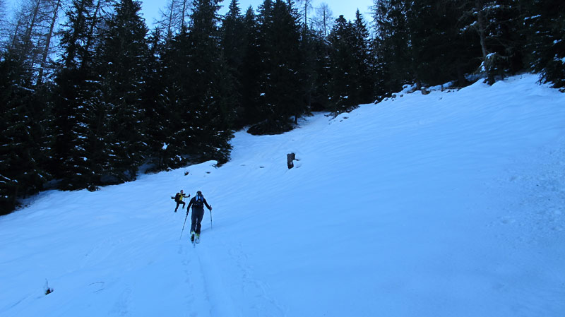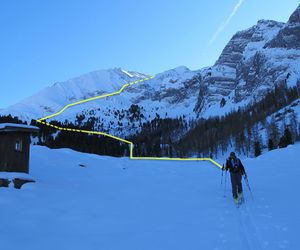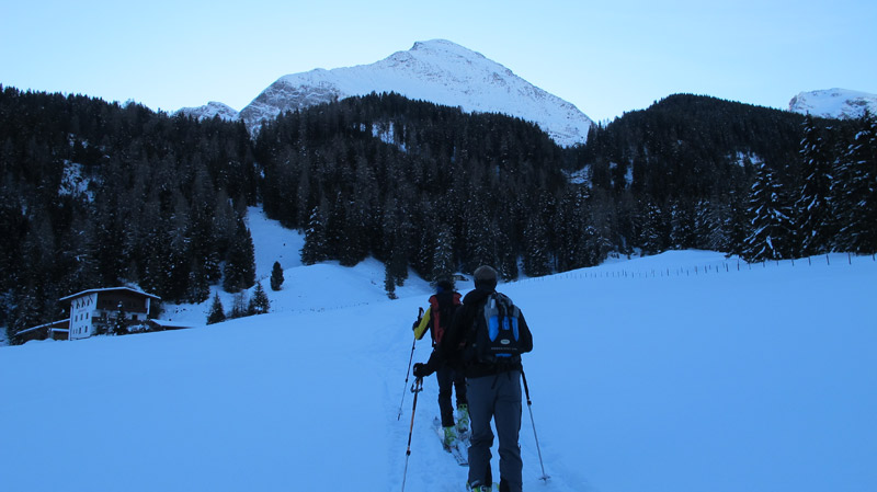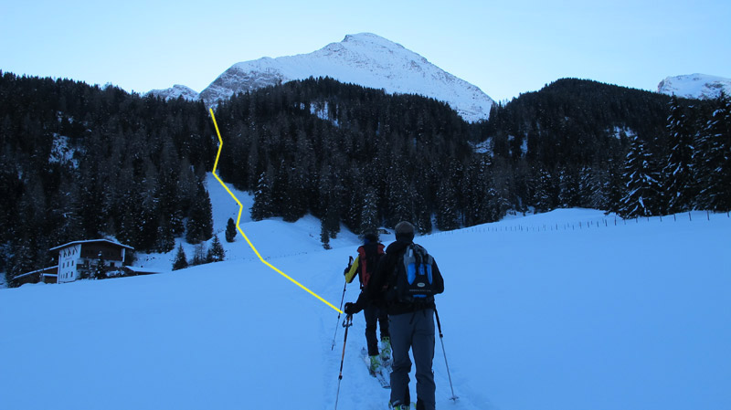 Bei geringer Schneelage startet man am Beginn der Rodelbahn der Höllensteinhütte und folgt dieser bis man die Hütte ca 1700m erreicht hat, wenn genug Schnee liegt kann man an der Brücke (Außeraue) hinter dem Hotel Eden starten und durch geschlagene Waldschneisen aufsteigen. Bei dieser Variante quert man die Rodelbahn mehrmals und verkürzt den Aufstieg zur Hütte deutlich.