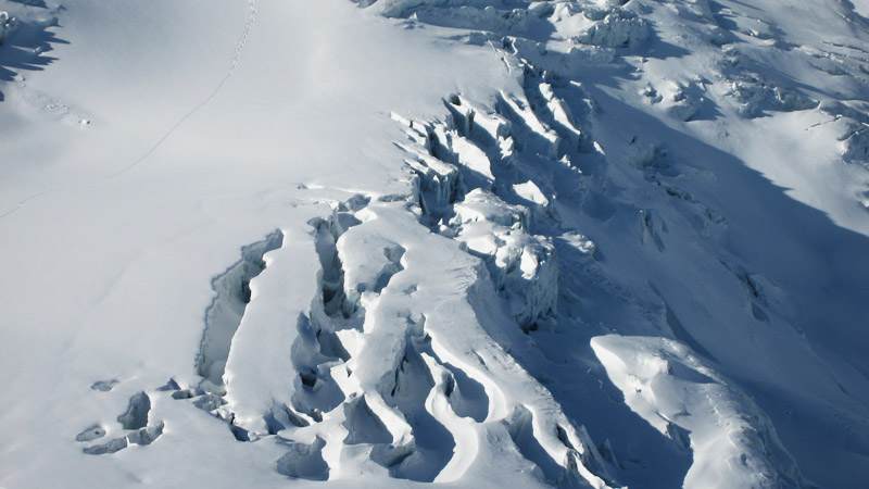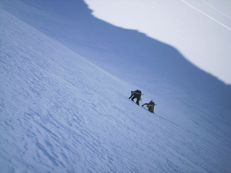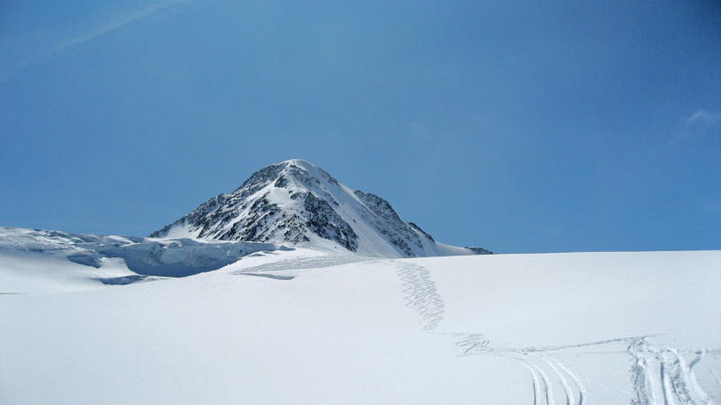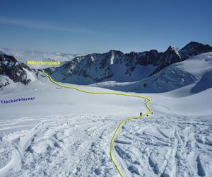 Hier vom Mitterbergferner auf den Taschachferner wechseln und dem Normalweg zur Wildspitze über den Taschachferner folgen bis man direkt vor dem hinteren Brochkogel steht, hier verlässt man die Spur und quert unter der Nordwand bis zum Einstieg.