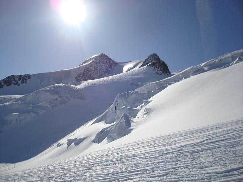 Von der Bergstation der Gletscherbahn zur Mitterbergbahn abfahren, mit dieser wieder hoch und zum Mitterbergjoch abfahren.