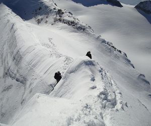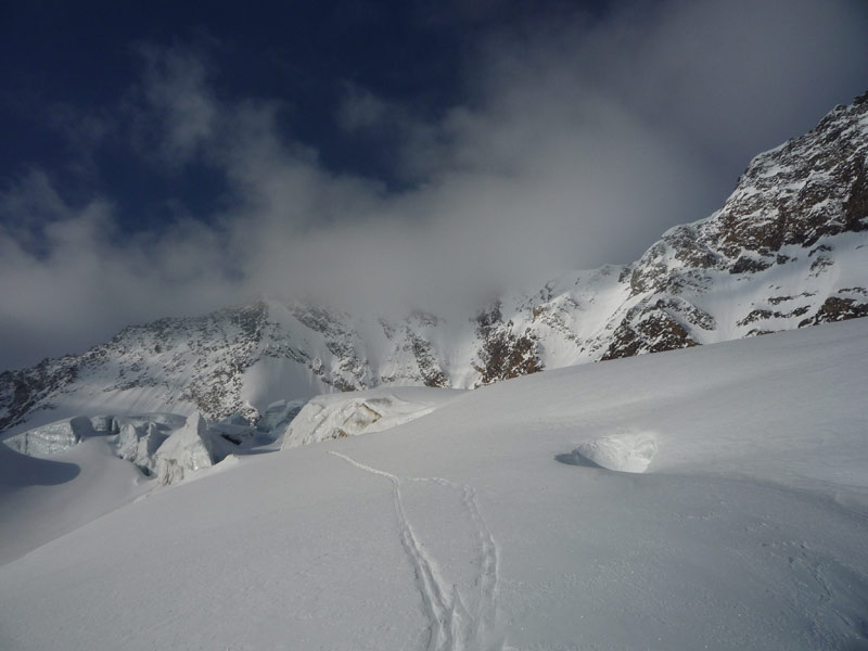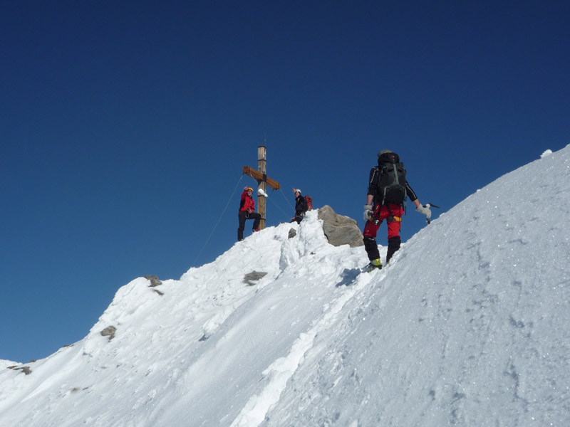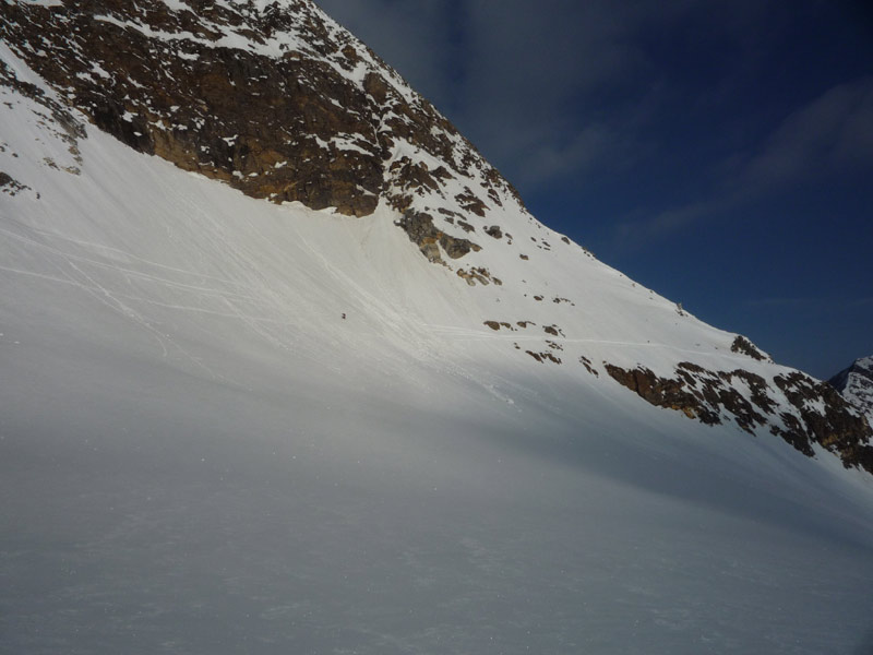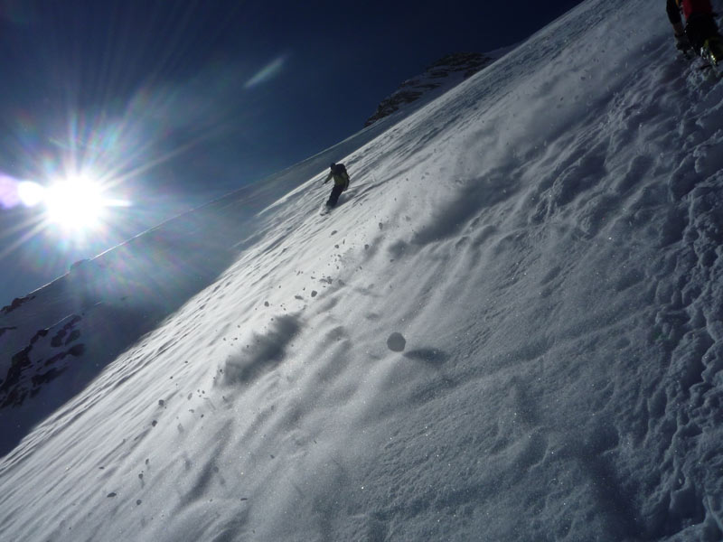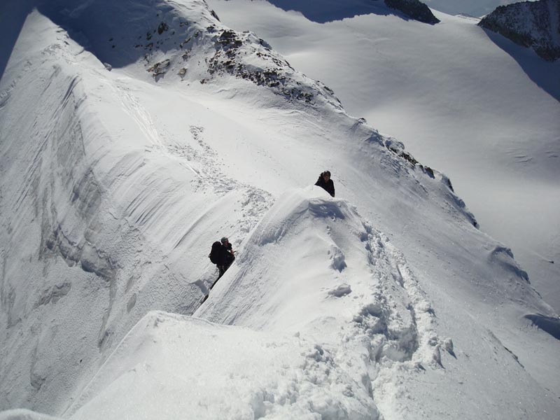 Am Ausstieg rechts der Wächte muß man mit Felskontakt rechnen, linke Seite meist blank.