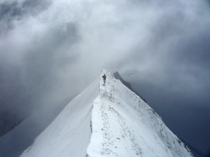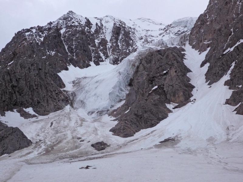 Variante1 - Vanisausstieg, vor dem Gletscherbruch nach links queren und im felsdurchsetzten Gelände in kombinierter Kletterei direkt auf den Gipfel.