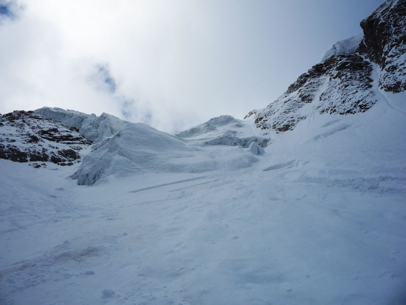 Variante3 - Rinne rechts neben dem Eisbruch, einfachere Variante die am den Steilstufen vorbeizieht.