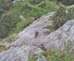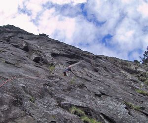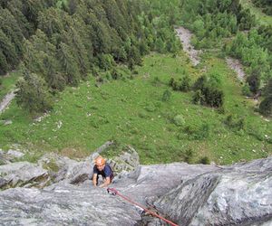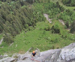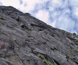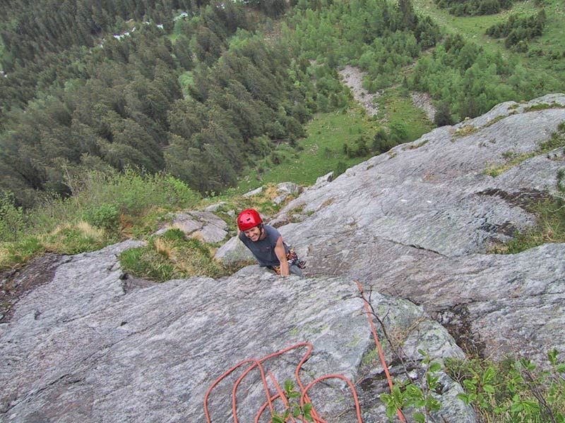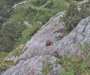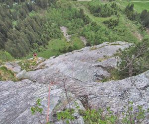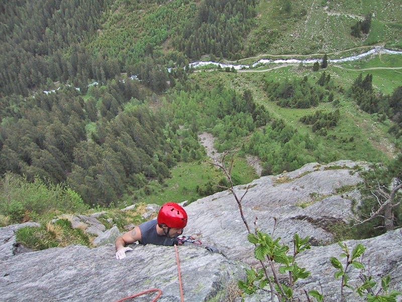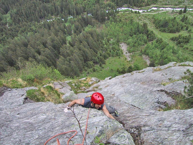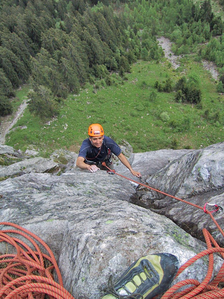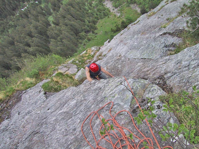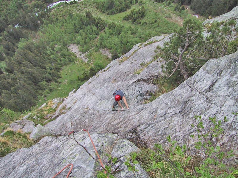 Meist Platten und Wandkletterei, es finden sich auch einige Verschneidungen und kleine Dächer in der Route. Sehr gut mit Borhacken versichert. Führ jeden Genusskletterer ein heisser Tipp.