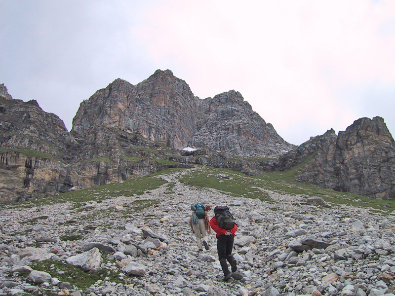 Nun muss noch das Steile Geröllfeld bis zum Wandfuss aufgestiegen Werden ca 0,5 Stunden.