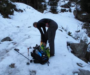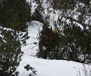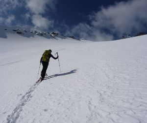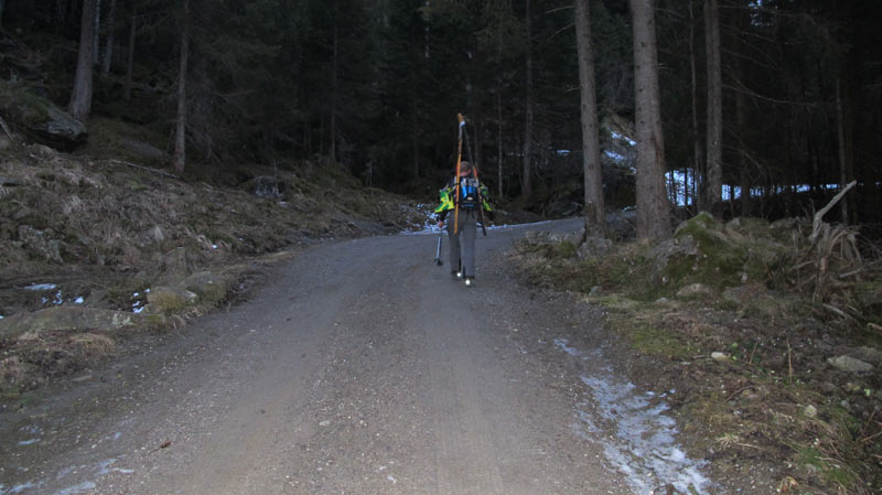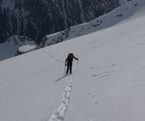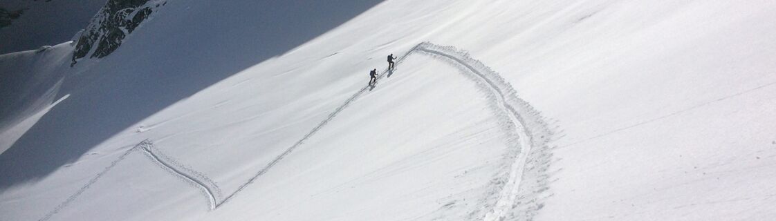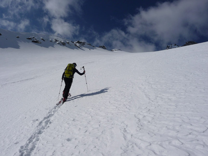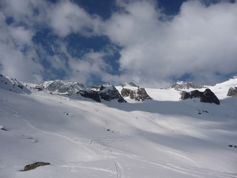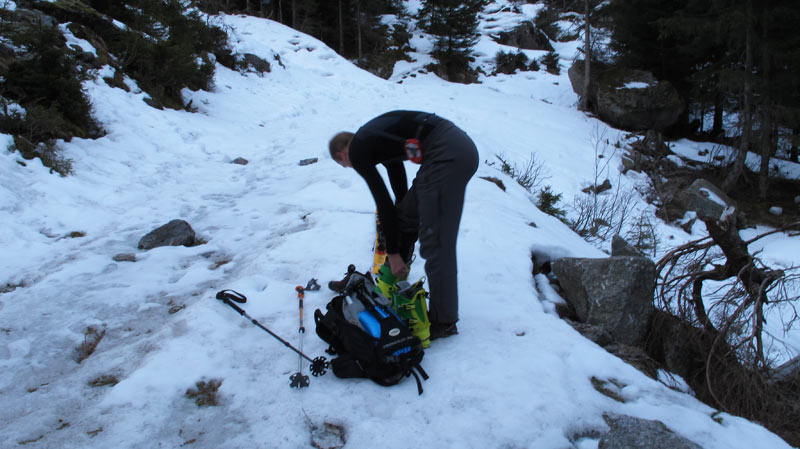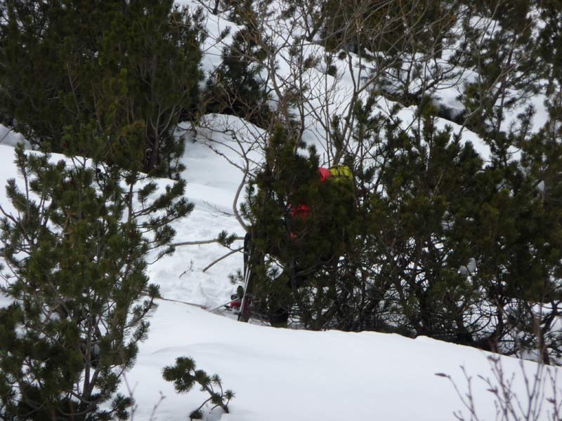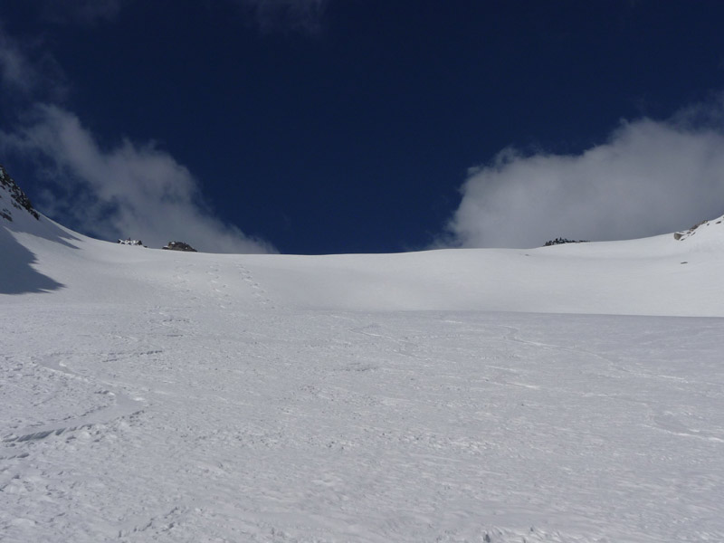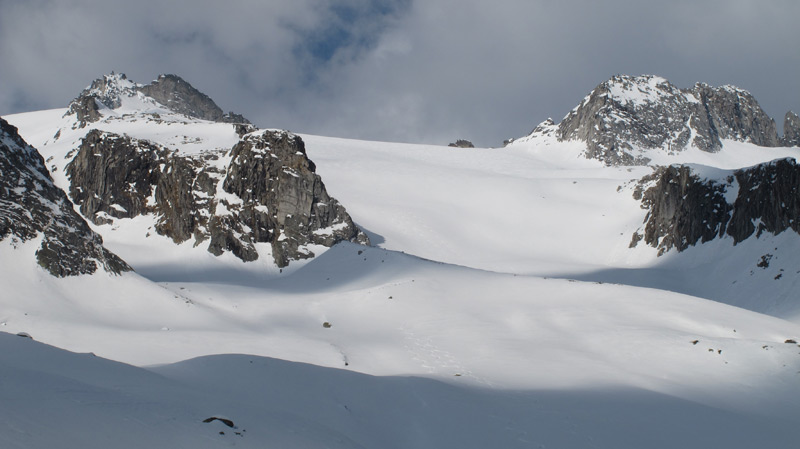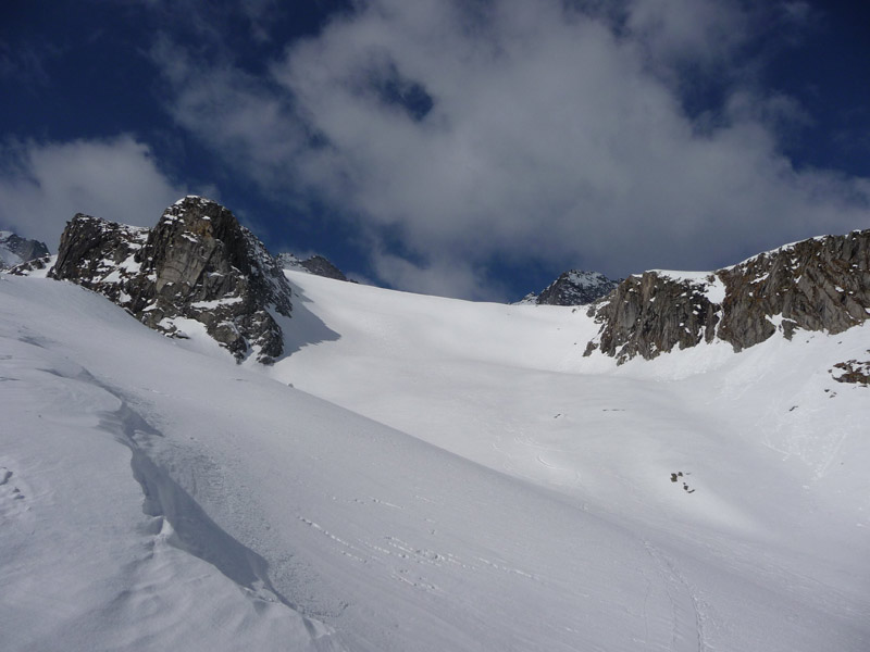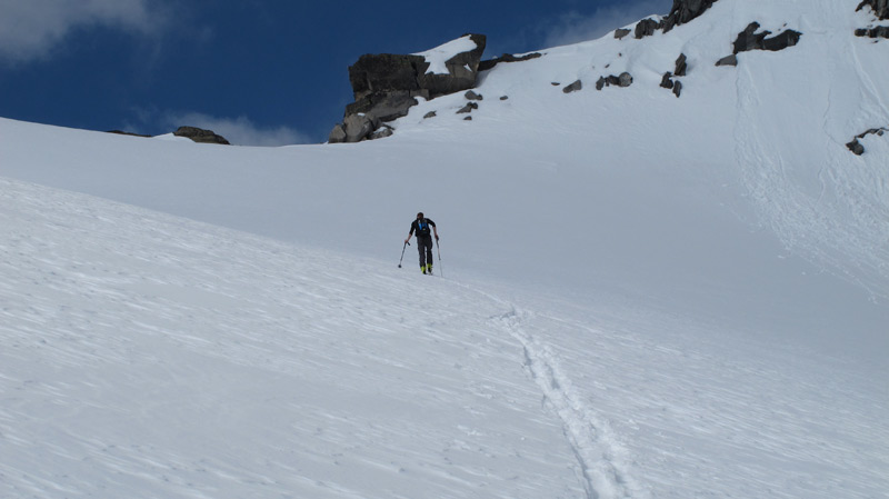 An der Scharte ist das Schidepot, der Gipfel wird normalerweise im Winter nicht bestiegen.