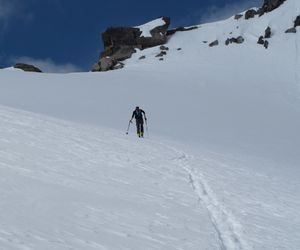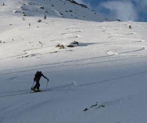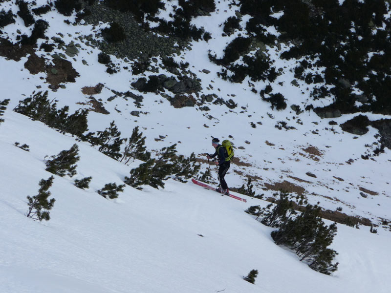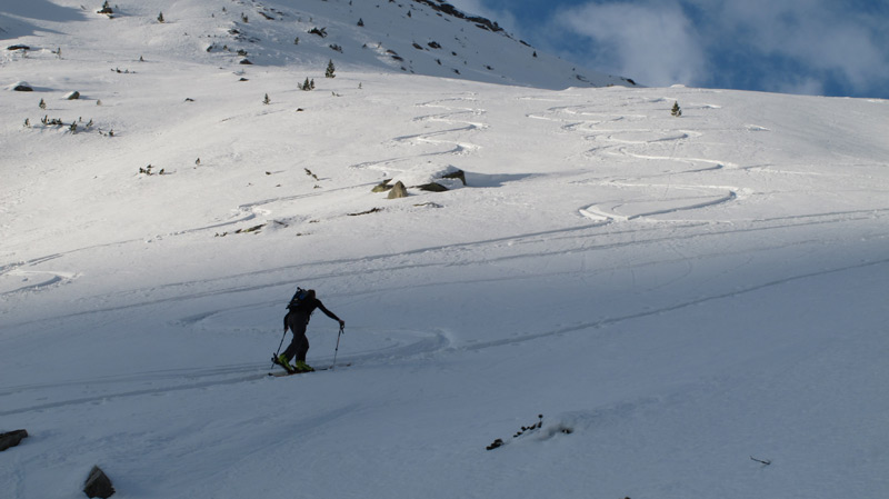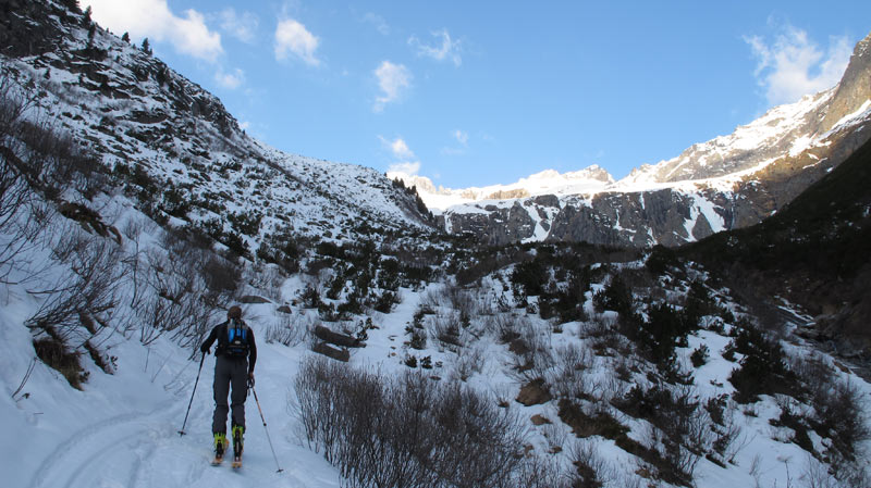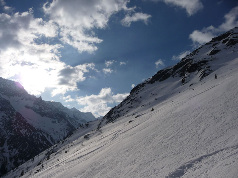 Ab hier steigt man mittig durch das Kainzenkar auf, immer in der breiten, markanten Rinne zwischen den Felsen. Nach einem langen, steilen Hang gelangt man auf einen langgezogenen Rücken der direkt unter den Gipfel führt.