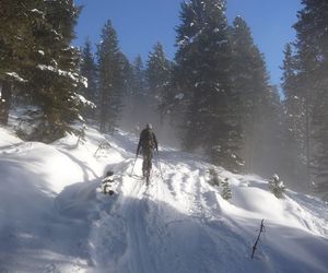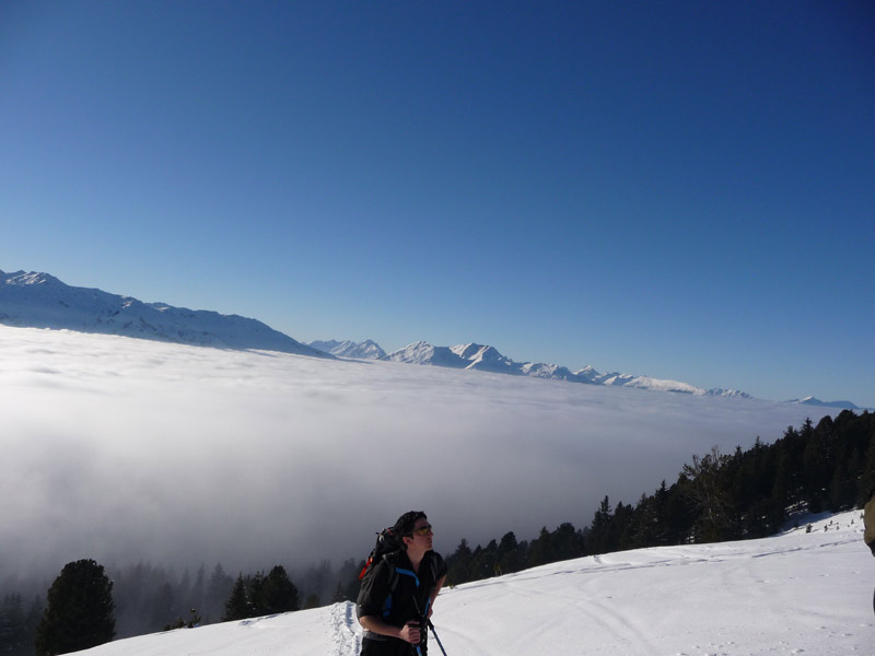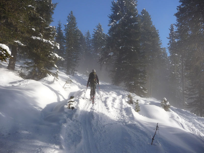 Ausgangspunkt der Tour ist der Gasthof Talblick, direkt hinter dem Haus über die Hänge aufsteigen, vorbei an Almhütten, man quert zwei mal die eingeschneite Forststrasse und gelangt so vorbei an einer einsamen Hütte bis direkt an den Waldrand, hier muss man dem Wanderweg (Sommerweg) folgen und gelangt direkt auf die Kogelangeralmen.