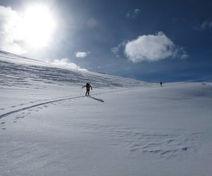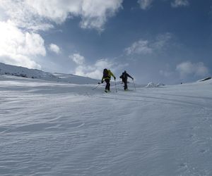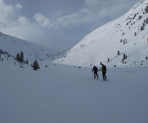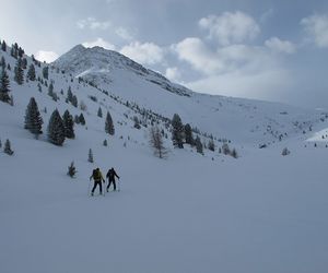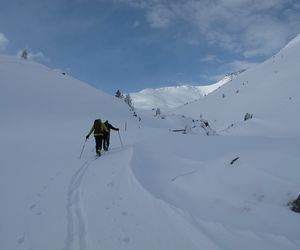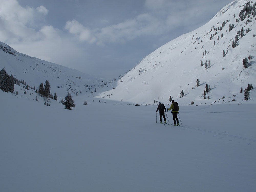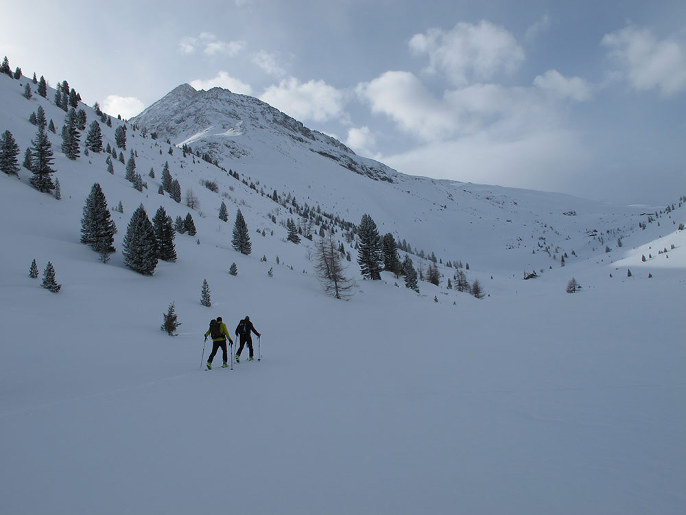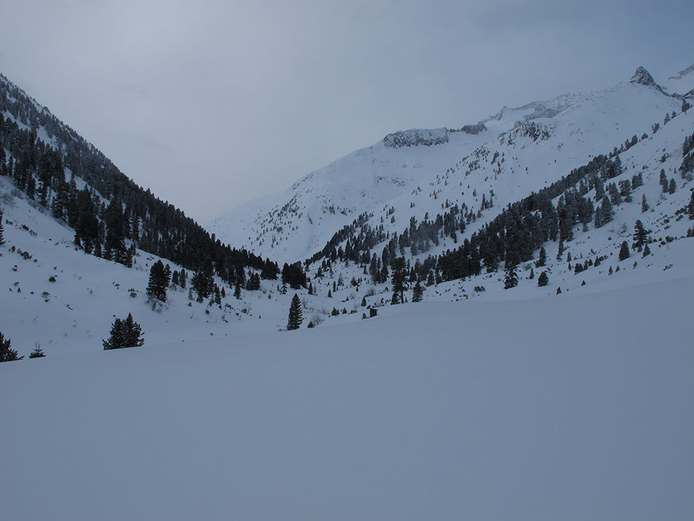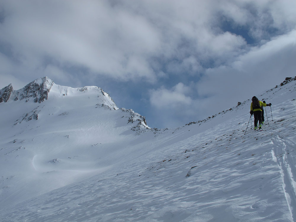 1. Man durchquert den grossen Talboden und steigt wie im Sommer in Richtung Pfitscherjochhaus auf, hier kann man dann im Bereich der Zollhütte nach links schwenken und dann in Richtung Gipfel aufsteigen, es finden sich immer mässig steile Hänge für einen sicheren Aufstieg bis unter den Gipfelhang, bei guten Verhätnissen kann der steile Gipfelaufbau direkt mit Schi gemacht werden, anonsten muss zu Fuß über den Grat augesteigen werden. Achtung das letzte Stück muss durch die Flanke gestapft werden, hier kann man nicht auf den Grat ausweichen.