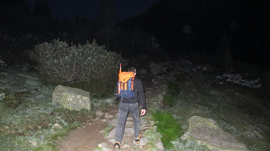 Am Gasthaus Schlegeis vorbei bis zum grossen Parkplatz am Ende der Strasse beim Zamsgatterl, dort parken. Von hier auf dem Wanderweg in Richtung Pfitscherjoch, nach ca. 1,5 Stunden am Ende des Talkessel nicht zum Pfitscherjochhaus aufsteigen, sondern hier die Schotterstrasse verlassen und auf den Wipptaler Höhenweg abbiegen. Diesem folgt man nur bis auf die andere Bachseite (kleine Holzbrücke), anschliessend steigt man weglos zu der großen Moräne unterhalb des Schrammachgrats auf. Hat man die schier endlose Moräne hinter sich  (ca 1,5 Stunden) folgt noch ein kurzer, steiler Aufschwung der einem zum Beginn des Stampflkees leitet.