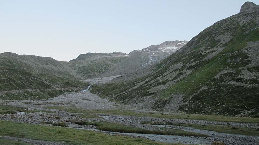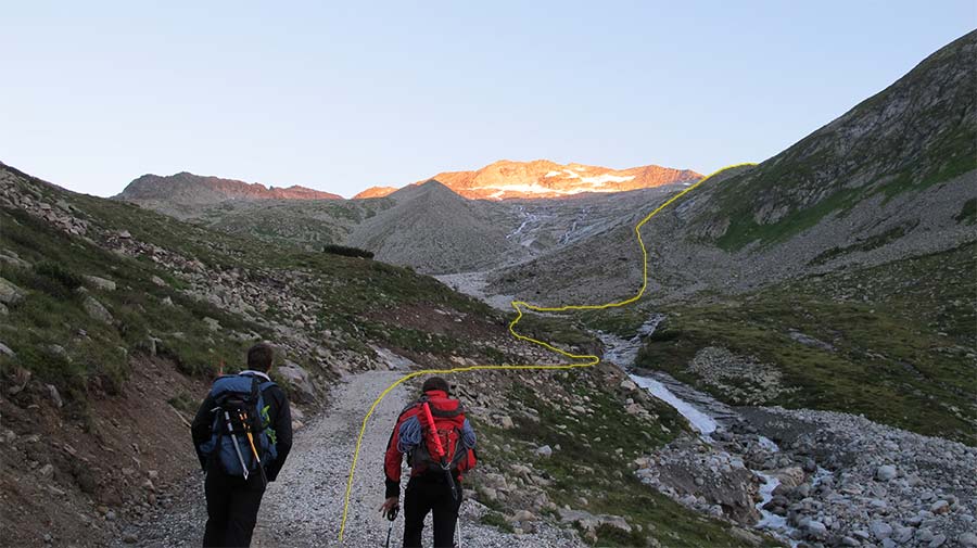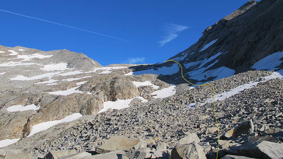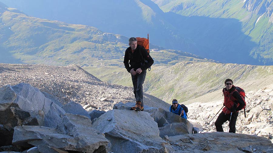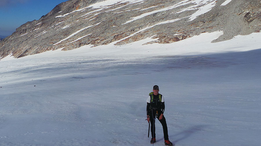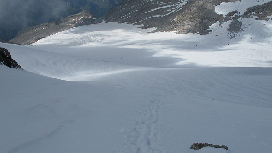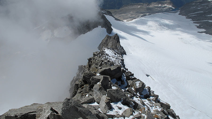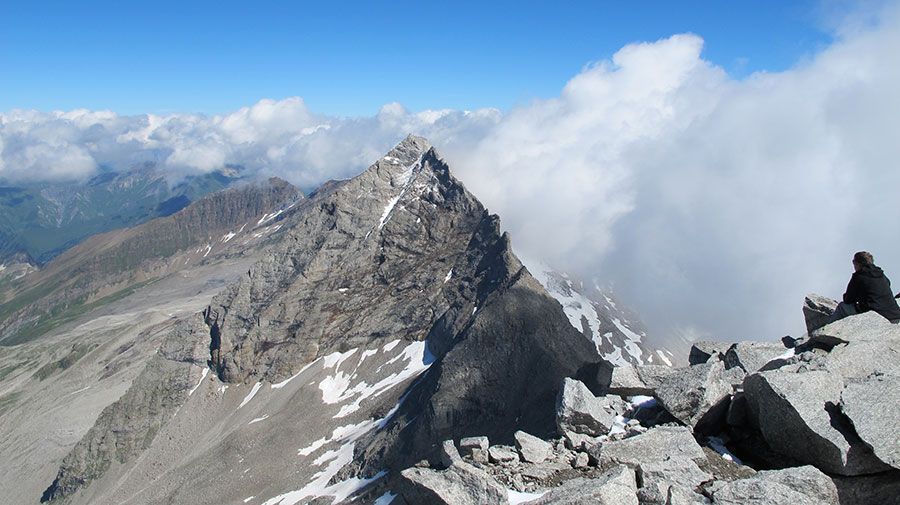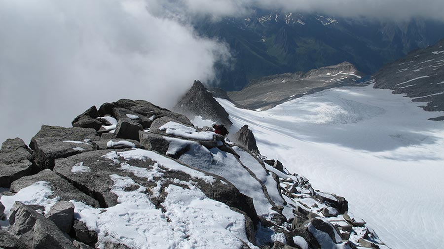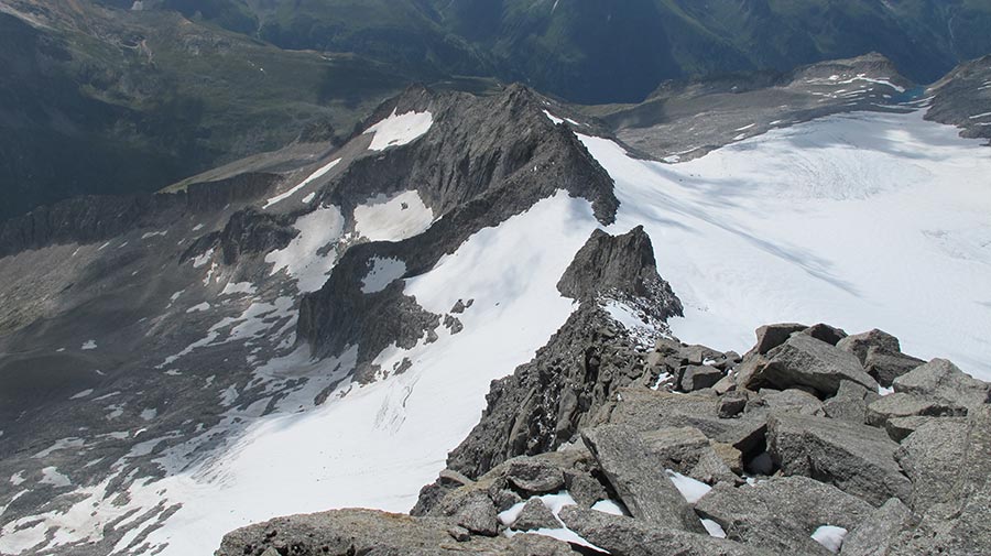 Auf dem selben Weg über den Grat zurück, anschliessend kann über das Stampflkees oder über das Oberschrammachkees abgestiegen werden.
