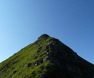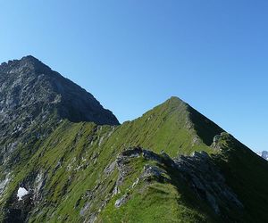 Am Dristeneck (der ersten massiven Felswand) angelangt quert man nach links zu einem markanten Felsblock der einen Durchlass auf die andere Gratseite zulässt, ab hier beginnen die Schwierigkeiten, gleich zum Anfang eine ca 7m hohe Felsplatte (II).