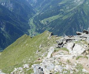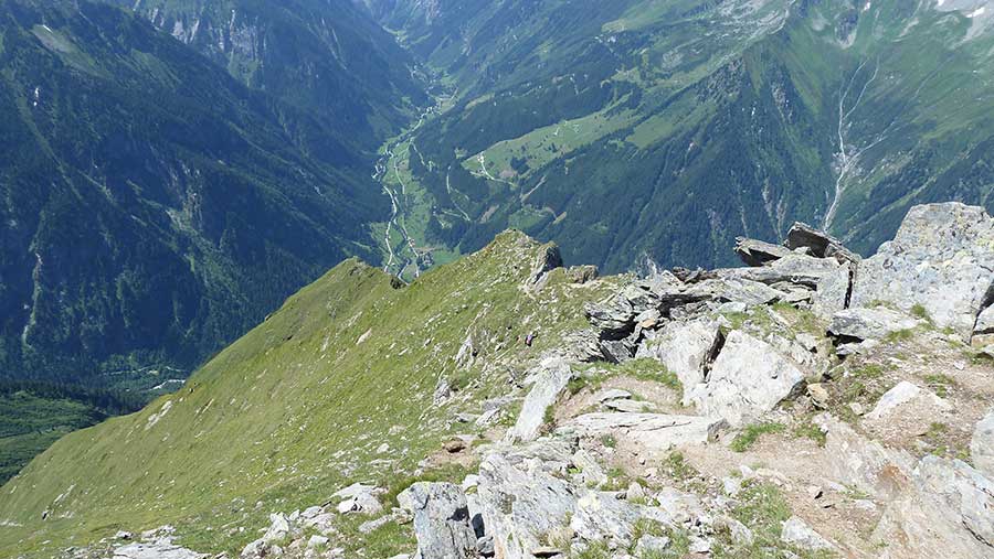 Vom Gipfel über den nicht weniger steilen Normalweg nach Ginzling.
