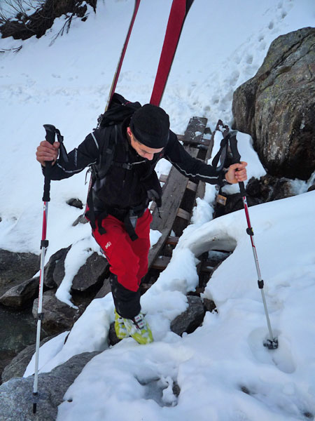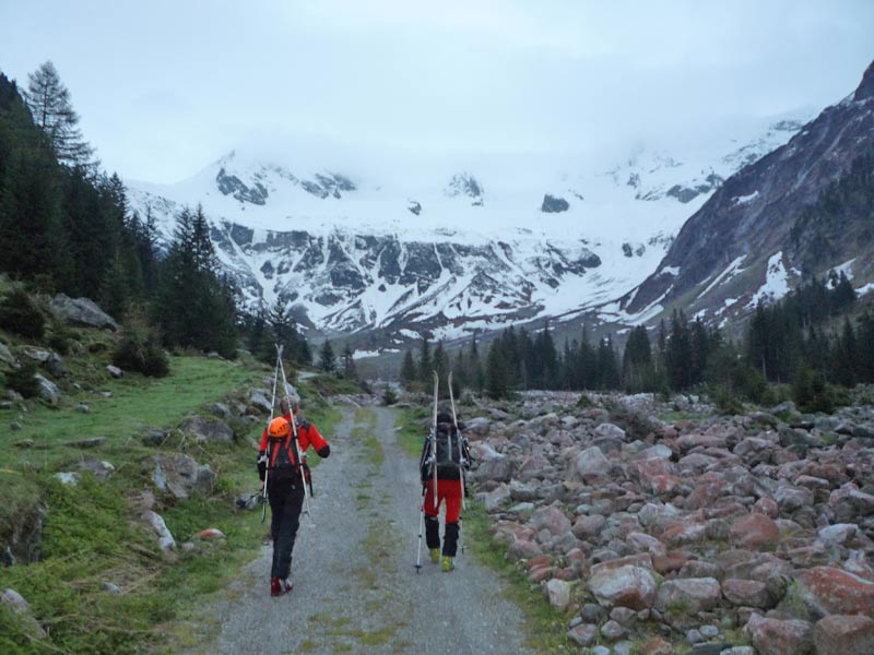Durch das Zillertal nach Mayrhofen, am Ortsende an der Ahornbahn vorbei und in den Stillupgrund. Je nach Schneelage und Lawinensituation bis zur "Grünen Wand Hütte".