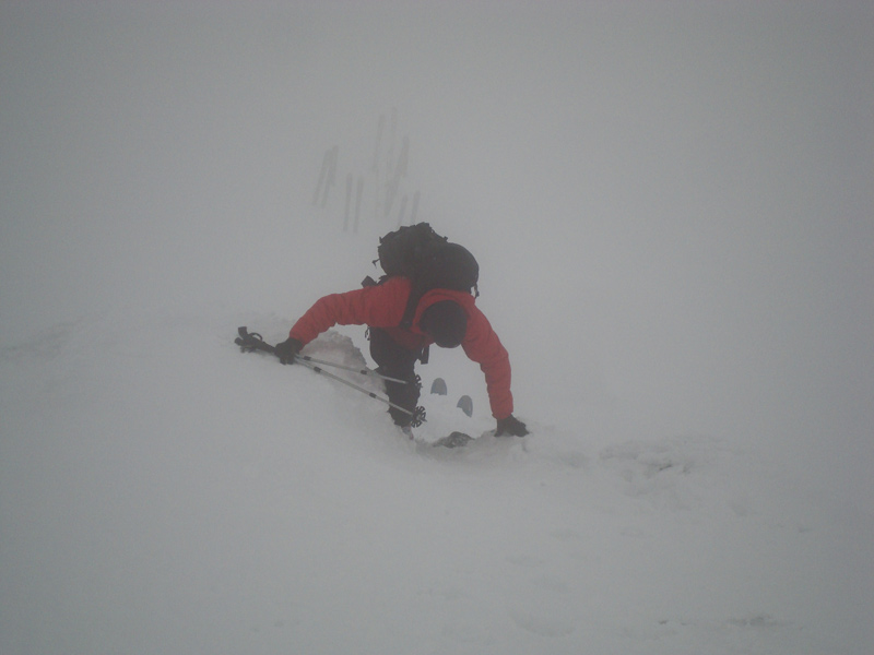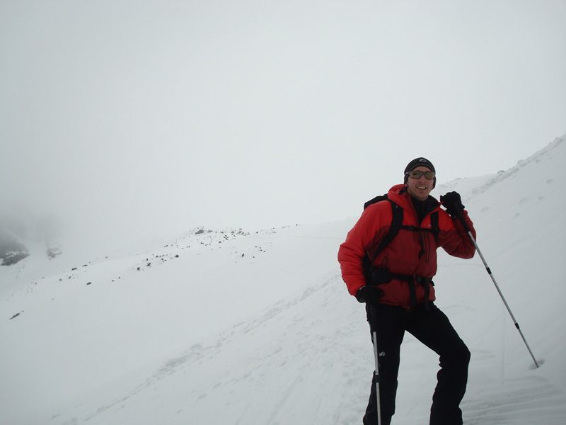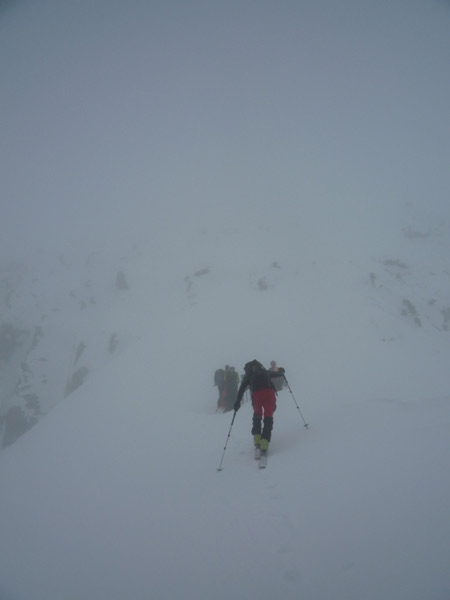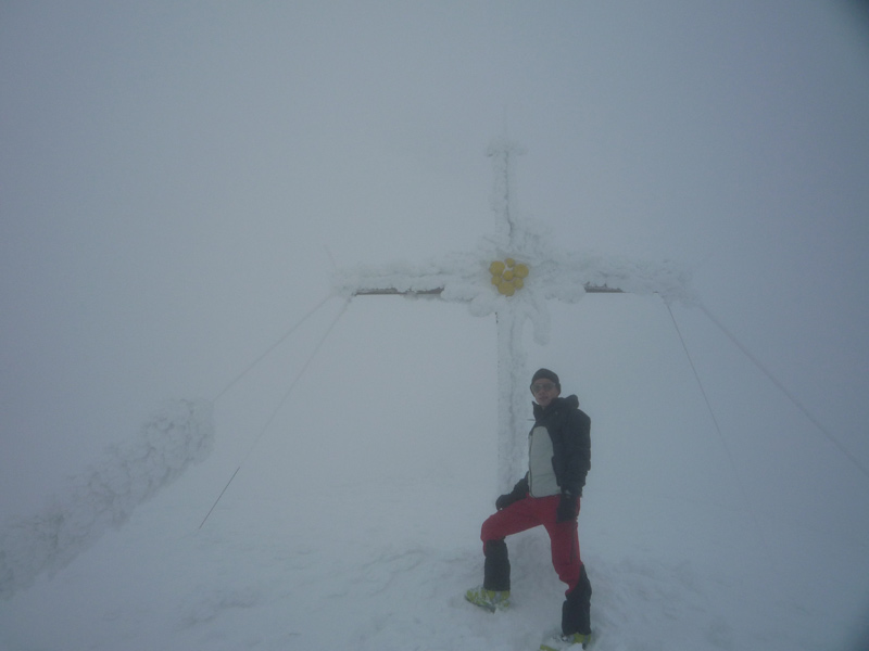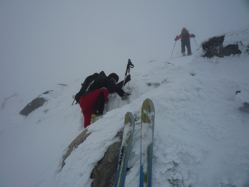 Auf 3050m erreicht man das Stangenjoch, von hier je nach Verhältnissen mit oder ohne Schi auf den Gipfel. 2 Gipfelkreuze.