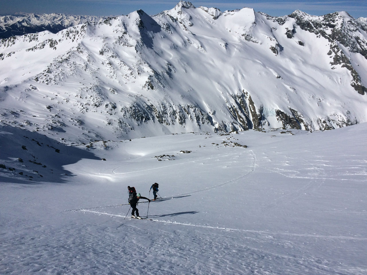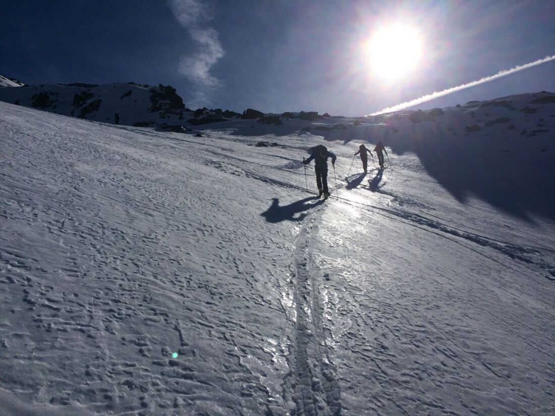Die Abfahrtsverhältnisse werden immer besser, bald kann man richtig aufm Firn surfen.