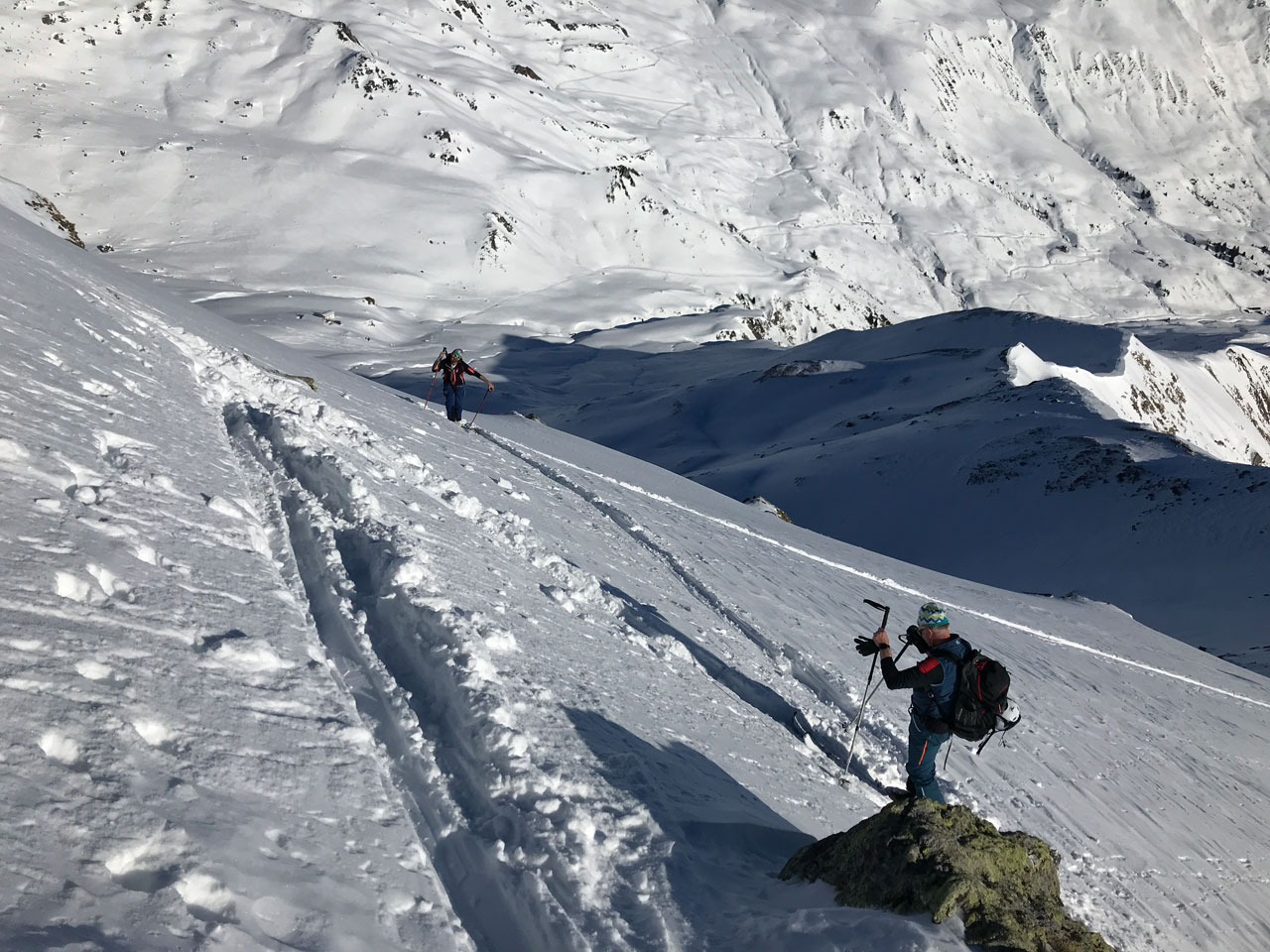 Aussichtige und steile Gratwanderung im Tux (könnte auch Spitzkehrenparadies genannnt werden), bestes Wetter und Windstill so soll es sein, auch die Abfahrt war noch überraschend gut.